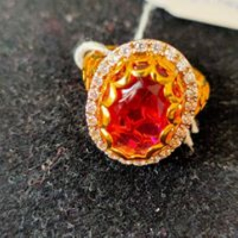 925 Sterling Silver Ring studded with Cubic Zircons and centre is studded with semi precious Ruby.R